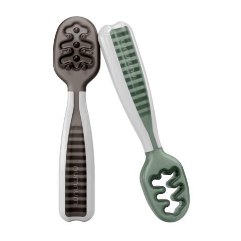 Le design plat innovant des ces pré-cuillères encourage l'autonomie du bébé. Ne nécessitant pas le mouvement de rotation du poignet ou l'équilibre d'une cuillère conventionnelle, elles empêchent ainsi les aliments de tomber et aident le bébé à s'habituer à une cuillère normale.