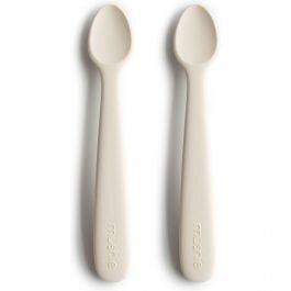 Les cuillères en silicone de Mushie sont adaptées aux gencives de votre bébé.