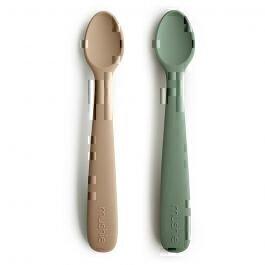 Les cuillères en silicone de Mushie sont adaptées aux gencives de votre bébé.