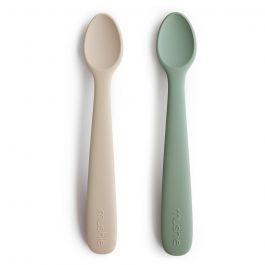 Les cuillères en silicone de Mushie sont adaptées aux gencives de votre bébé.