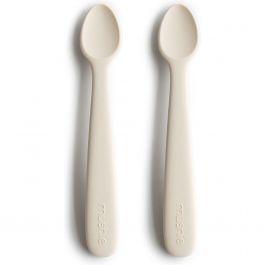 Les cuillères en silicone de Mushie sont adaptées aux gencives de votre bébé.