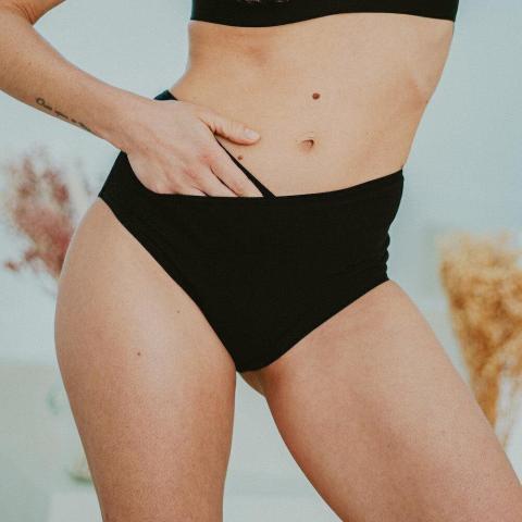 La culotte menstruelle taille haute made in France Elia est innovante, flatteuse pour la silhouette, ultra confortable. Absorbe l'équivalent de 4 tampons.