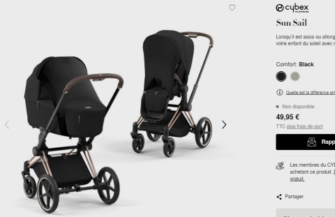 en toute liberté. Il est possible d'ajouter toutes vos envies cadeaux et de recevoir les dons directement sur votre compte. Avec les dons reçus, vous êtes alors libre d'aller acheter vos produits (comme ce 'CYBEX Sun Sail | Boutique en ligne officielle