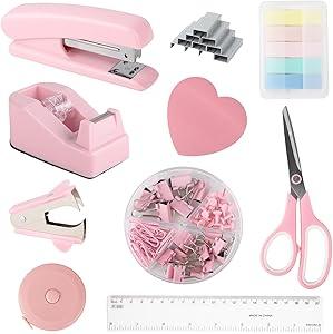 DaizySight Kit de fournitures de bureau et d'accessoires rose avec agrafeuse et distributeur de ruban adhésif pour filles avec agrafeuse, distributeur de ruban adhésif, dissolvant, règle, fournitures : Amazon.com.be: Fournitures de bureau