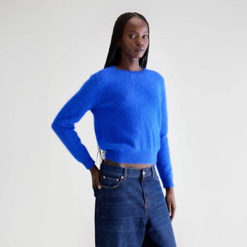 Klassieke trui met ronde hals, lange mouwen en geribde boorden, in lazuliblauwe angoramix. Shop nu de laatste trends voor vrouwen.