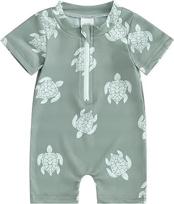 Dazzerake Maillot Unie Pièce pour Bébé Garçon 3 Mois-3 Ans Maillots de Bain à Motifs Combinaison de Maillot à Manches Courtes tortues 0-3 Mois