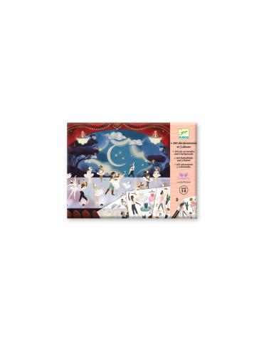 Activité décalcomanies Djeco pour les enfants de 5 à 8 ans. Création de scènes de danse classique avec plus de 100 images à transférer sur 3 décors.