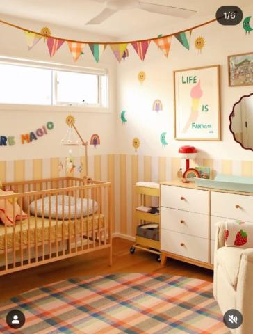 Nous avons déjà upcyclé un meuble en le peignant, ça rend super bien ! On a trouvé un tapis qui pourra rester plusieurs années, pas trop connoté "baby". On pense chercher une source lumineuse douce, des petites étagères, des cadres et affiches, l'une ou l'autre guirlande,...