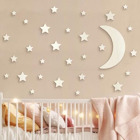 Ce produit est extrait d'une liste de naissance déposée sur Kadolog. Kadolog permet de créer des listes de naissance en toute liberté. Il est possible d'ajouter toutes vos envies cadeaux et de recevoir les dons directement sur votre compte. Avec les dons reçus, vous êtes alors libre d'aller acheter vos produits (comme ce 'Déco murale en bois - Ensemble lune et étoiles ') où et quand vous le souhaitez.