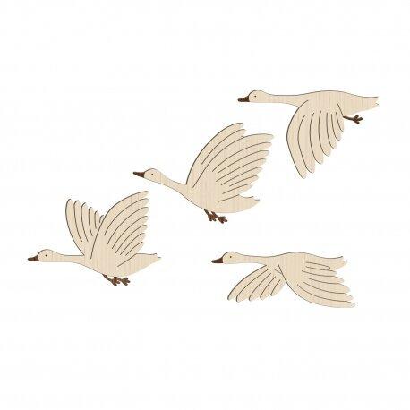 Décoration originale et unique en bois : envolée d'oies sauvages à accrocher au mur dans une chambre d'enfant.
