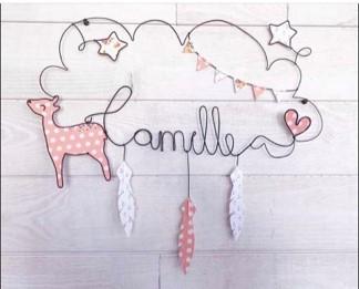 Tortillon en forme de nuage avec un faon et le prénom de bébé pour décorer sa petite chambre ;)