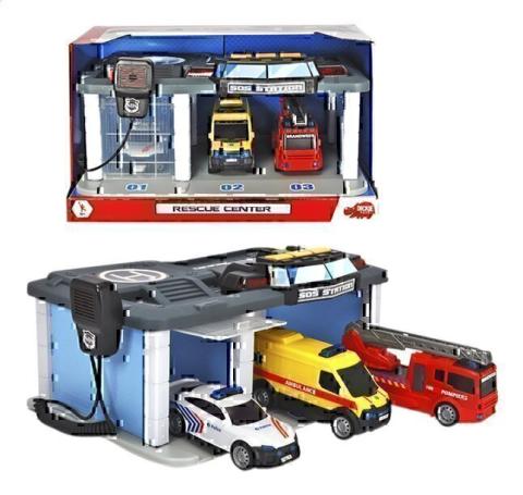 Dors sur tes deux oreilles, avec ce centre de secours, tu peux répondre à toutes les urgences. Les portes s'ouvrent pour les trois véhicules : ambulance, camion de pompier, voiture de police.