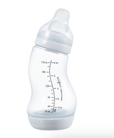 Le biberon en S de Difrax est le biberon préféré de bébé, papa et maman. Sa forme en S et sa valve anti-coliques en bas reduisent les risques de crampes intestinales, de renvois et de vomissements.