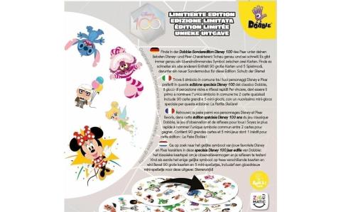 Trouvez le symbole correspondant de vos personnages Disney et Pixar préférés dans cette édition spéciale Disney 100 ans de Dobble : le jeu de cartes classi