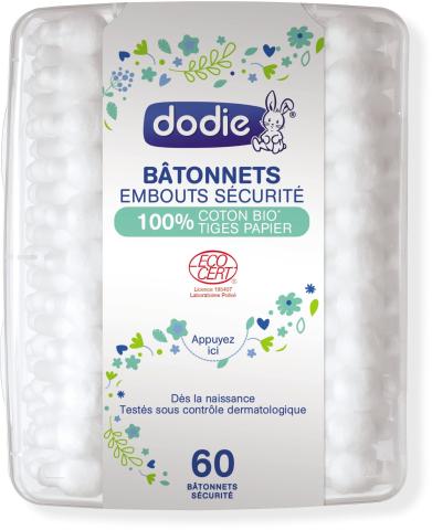 Coton-tige de sécurité évitant de causer des problèmes dans le conduit auditif des bébés et des enfants. Ingrédients issus de l'agriculture biologique.