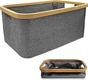 DOKRVLOQ Panier à Linge Pliable Sale Bambou Tissu Gris 50 L, Grand PanièRe de Rangement Corbeille Banette a Linge Retractable : Amazon.com.be: Cuisine et maison
