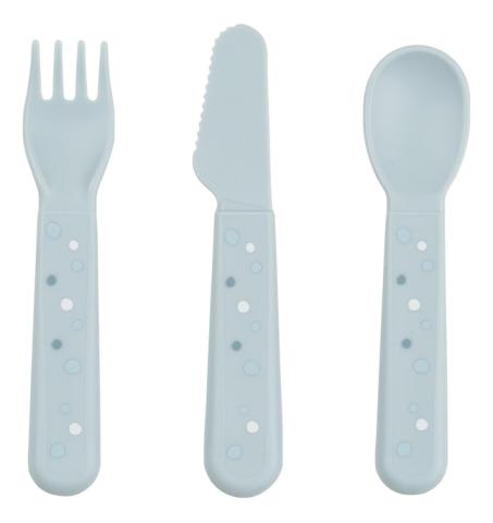 - Contient une fourchette, une cuillère et un couteau.