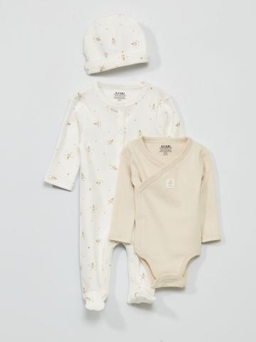 La sélection + : Un dors bien malin pour les tout-petits, avec son ouverture pression sur le devant et tout doux avec sa matière en coton bio. On adore : le trio avec body et bonnet. Dispo aussi pour les prémas.Un ensemble parfait pour dormir paisiblement ! - Pyjama dors-bien - Facile à enfiler - En jersey - Col rond - Manches longues - Ouverture par boutons pressions - Imprimé fantaisie all-over - Avec pieds - Body en jersey - Col rond - Manches longues - Ouverture par boutons pressions - Couleur unie + patch fantaisie devant - Bonnet assorti - En jersey - Imprimé fantaisie