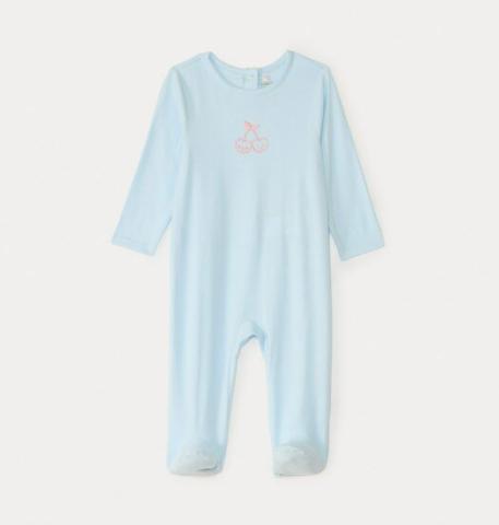 Dors-bien à manches longues en jersey. Coloris uni. Broderie fantaisie sur le devant. Pieds fermés. Ouverture pressionnée en pont dans le dos.