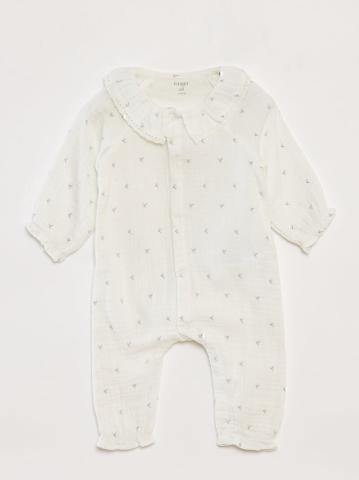 Bébé sera à l'aise dans ce dors bien sans pieds. Ses détails originaux la rendront encore plus mignonne. - Dors bien en double gaze de coton - Sans pieds - Manches longues avec poignets élastiqués - Col claudine avec bords brodés - Volants aux poignets et au bas de jambe - Ouverture pressions devant - Imprimé all over