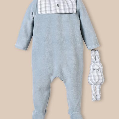 Avec son doudou assorti, ce dors-bien est le cadeau de naissance idéal. Plastron à carreaux avec broderie CY Ouverture dos et pont par pressions Doudou assorti