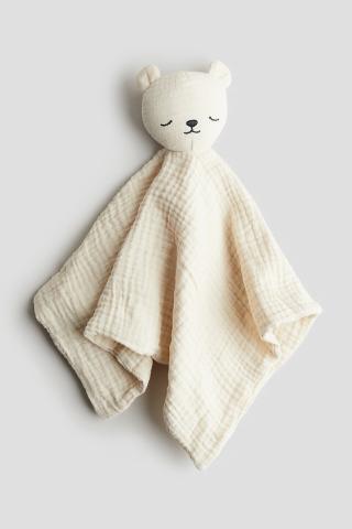 H&M Adorables. Doudou en douce mousseline de coton. Modèle de forme carrée avec ours matelassé. Dimensions 37x37 cm.