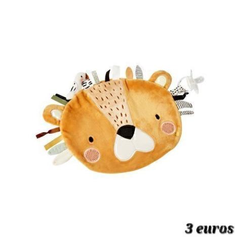 On craque pour cet adorable doudou plat lionceau qui permettra à bébé de faire de multiples découvertes ! Une crinière composée de rubans et de petits éléments à triturer et à mâchouiller, du velours à câliner et un attache-tétine pour avoir la tétine toujours à portée de mains... Essayer notre joli lionceau, c'est l'adopter !