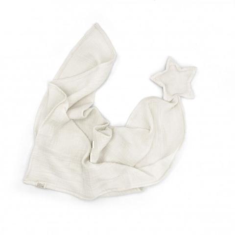 Serviette douce en gaze de coton biologique avec un détail d'étoile sur un côté.