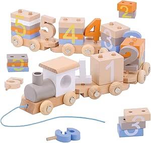 Dr. MUYA® Montessori 1 2 3 4 Ans, Jouet en Bois pour Bébé 1 An, Train Enfant, Jeu Éducatifs, Jouet d’Empilage, Cadeau d’Anniversaire, Cadeau 1–4 Ans Fille Garçon : Amazon.com.be: Jouets