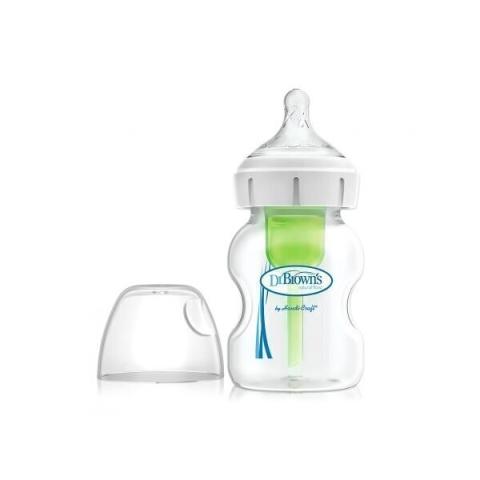 Deze brede Options+ fles is van het merk Dr.Brown's en heeft een inhoud van 150ml.De opties zijn nog nooit zo veelzijdig geweest als met de Dr. Brown's Natural Flow Options+ brede halsfles
