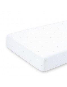Drap de lit de la marque Bemini. Couleur blanc avec de jolis petits points gris.