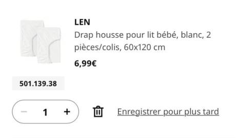 Ce produit est extrait d'une liste de naissance déposée sur Kadolog. Kadolog permet de créer des listes de naissance en toute liberté. Il est possible d'ajouter toutes vos envies cadeaux et de recevoir les dons directement sur votre compte. Avec les dons reçus, vous êtes alors libre d'aller acheter vos produits (comme ce 'Drap housse ') où et quand vous le souhaitez.