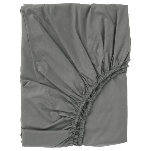 ULLVIDE Drap housse, gris, 90x200 cm. En lyocell et coton issu de la culture durable, avec un nombre de fils élevé. Des matériaux naturels qui laissent passer l’air et absorbent l’humidité pour un sommeil au sec toute la nuit.