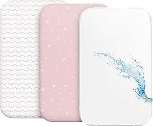 Drap Housse Cododo (Set de 2) + 1 Protège Matelas Impermeable avec Elastique - 3-en-1 - Taille 50x83 cm - Compatible avec Berceaux, Lit Matelas Cododo Bebe - Pour Fille et Garçon - Motif Rose