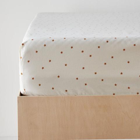 Drap-housse recouvert de petites étoiles coordonné à la housse de couette et la taie d’oreiller Aviateur. Coins élastiqués. Profondeur de bonnets 25 cm env.