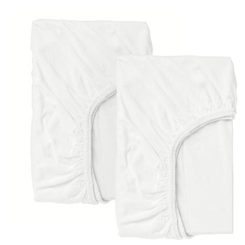 LEN Drap housse pour lit bébé, blanc, 60x120 cm. L'élastique maintient le drap en place même si votre enfant bouge et se retourne. Fabriqué en coton cultivé de manière durable, un matériau doux et naturel qui respire et absorbe l'humidité.