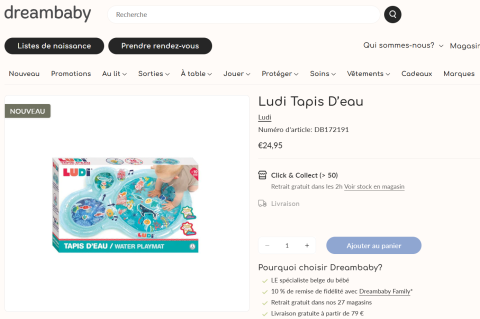 en toute liberté. Il est possible d'ajouter toutes vos envies cadeaux et de recevoir les dons directement sur votre compte. Avec les dons reçus, vous êtes alors libre d'aller acheter vos produits (comme ce 'Dreambaby Ludi Tapis d'eau