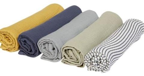 Dreambee Essuie hydrophile Essentials ocre/bleu/gris - 5 pièces | Liste de cadeaux Dreambaby