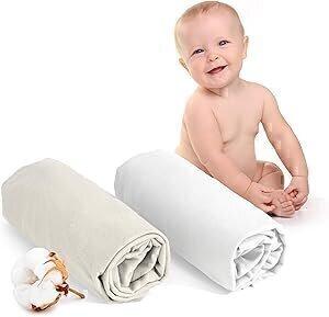 Dreamzie - Drap Housse 70x140 (x2) - 100% Coton Certifié Oeko Tex - Drap Housse 70x140 Bebe - Blanc et Beige : Amazon.com.be: Bébé et Puériculture
