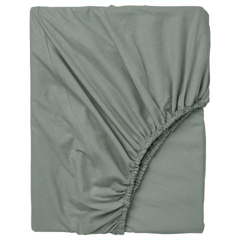 DVALA drap housse, gris vert, 90x200 cm Le drap-housse DVALA gris-vert est en coton 100 % naturel un matériau qui respire et absorbe l'humidité pour une température régulière toute la nuit. À chaque lavage, le drap devient plus doux et plus confortable.