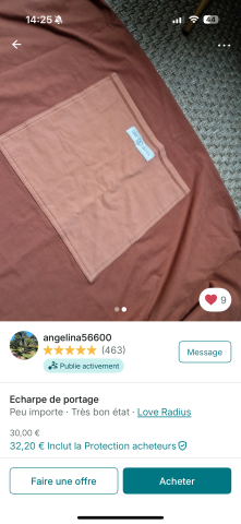 en toute liberté. Il est possible d'ajouter toutes vos envies cadeaux et de recevoir les dons directement sur votre compte. Avec les dons reçus, vous êtes alors libre d'aller acheter vos produits (comme ce 'Écharpe de portage d’occasion
