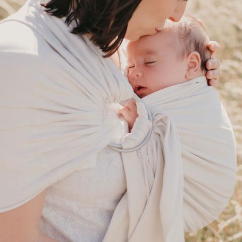 Une écharpe de portage toute douce, simple à utiliser et prêt en quelques secondes. Conçu en coton bio extensible.