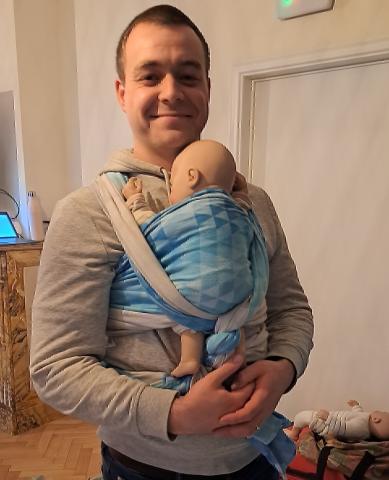 Sur la photo ce n'est pas le bon modèle mais on préférait vous partager un extrait du cours de portage qu'on a suivi. On a trouvé ce modèle hyper pratique et on a réussi à en trouver une d'occasion chez Borneloppen !