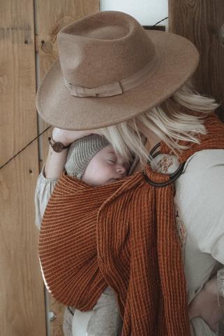 Ce sling est très doux, souple, maniable, confortable et tellement soutenant! Il est bien adapté pour porter vos nouveaux-nés comme vos bambins. Adapté pour tous niveaux de porteurs. Couleur: Un mélange de fils oranges foncé et marron pour un résultat brique entre le terracotta et orange Composition:Tissu 100% linAnnea