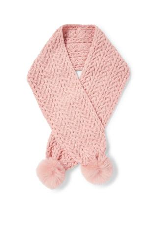 Écharpe en finition maille douce avec motif tressé et pompons en peluche aux extrémités fines. | C&A