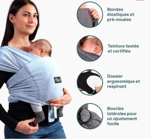 Facile à porter, comme un t-shirt et laisse les mains libres. Parfaite pour calmer et endormir bébé. Prévient les maux de dos grâce au dossier ergonomique. Ajustable et adaptée à toutes les morphologies. Utilisable dès la naissance jusqu'aux 9 kg du bébé.