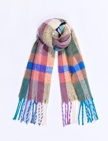 Écharpe rectangulaire à carreaux, douce et chaleureuse, idéale pour illuminer vos tenues d’hiver avec ses couleurs vives et contrastées. Ses finitions à franges lui apportent une touche décontractée et tendance, parfaite pour un style cosy et moderne.Écharpe rectangulaire à carreaux100% PolyesterFinition frangesDimensi
