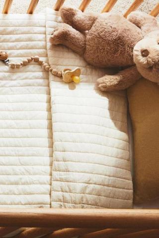 Édredon pour enfant avec rembourrage matelassé en microfibre et fines rayures verticales. Taille berceau 100x120cm