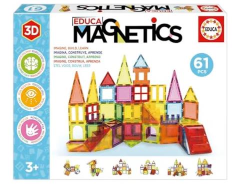 Educa Magnetics | Magnetic 3D Building Educational Game with 61 Pieces for Kids, Builds Geometric Figures by Developing Creativity and Imagination. Ages 3+ (20024) : Amazon.com.be: Toys