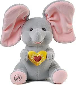 eJog Pup Peluche Éléphant Interactive Électrique, Flappy L'Éléphant, Chante, Jouet en Peluche Peek-a-Boo,